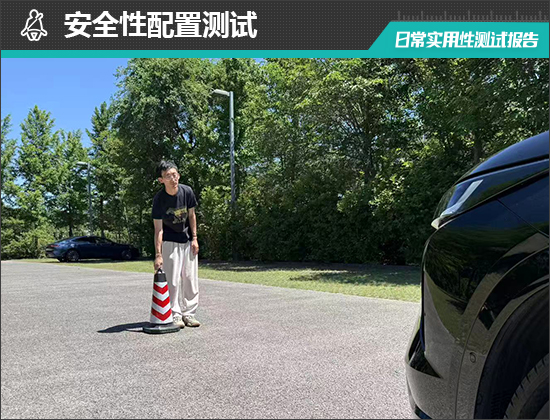 在前方视野测试中,我们采用高70cm的桩桶作为参照物,随后调整车距,直至在主驾驶位可以看到桩桶上沿。经过测试,桩桶与车头最终测得的数据为3.322m,在测试过的同级别车型中处于中游水平。