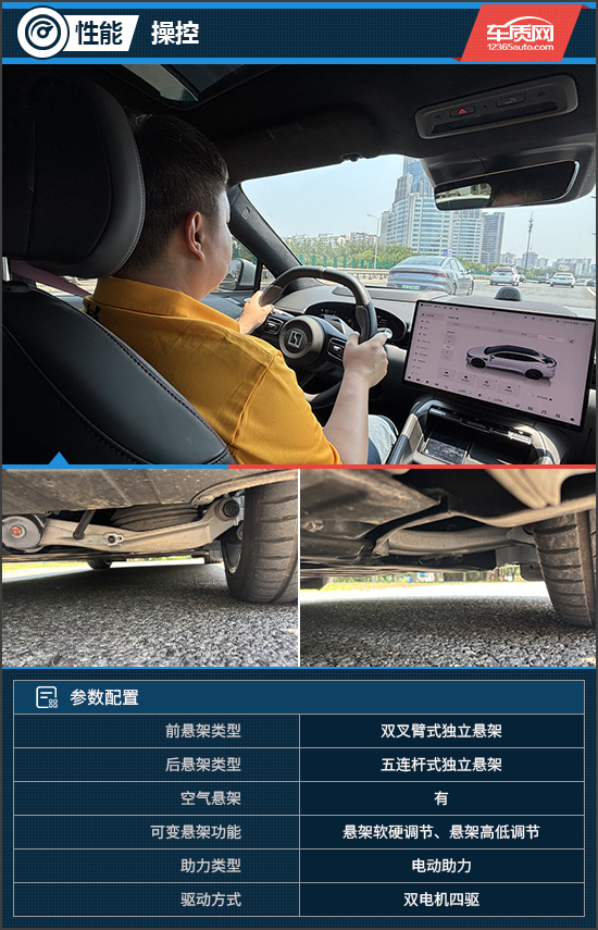 实际体验中,评测车在不同驾驶模式下展现出鲜明的性格差异。在舒适模式下,动力响应线性且跟脚,加速踏板行程与动力输出高度匹配,转向手感轻盈,适合城区代步。切换至运动模式后,动力响应明显更为迅猛,转向手感更沉稳,整体状态更显亢奋,运动性能充分释放。此时全力加速,强烈的推背感让身体被牢牢按在座椅上。