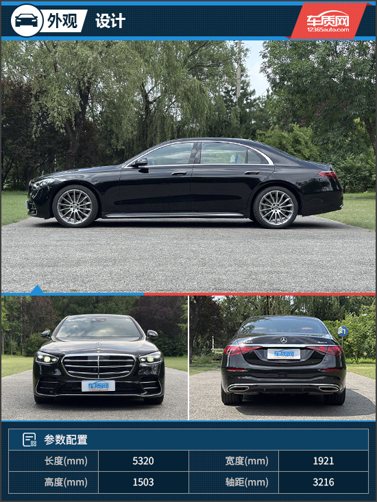 评测车在外观设计上秉承“新豪华主义2.0”理念,以简约流畅的曲线与曲面勾勒出其独有的几何美感。车头配备大尺寸盾形格栅,配合经典的三叉星立标,尽显庄重与威严;AMG专属车身组件则为整车增添了一丝运动气息。车身侧面线条修长舒展,隐藏式感应门把手在乘员靠近时自动弹出,营造出优雅的迎宾仪式感。车尾则延续了扁平化设计思路,“湖光楼影”风格的双段式尾灯组由多组立体钻石切割光柱构成,点亮后极具视觉冲击力与辨识度。