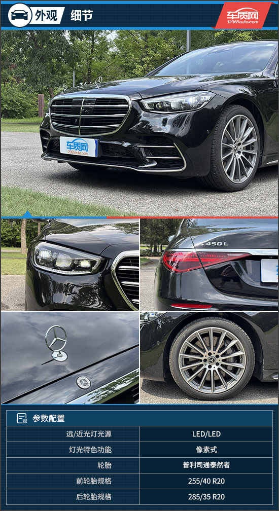细节方面,评测车配备的“流星雨”数字大灯由260万个微镜元件构成,可根据道路情况实现精准的光束分布,提升了夜晚能见度。两侧车门支持电动吸合功能,星徽迎宾灯则如星辰洒落,令每一次上下车尽显优雅。轮毂方面,新车搭载20英寸AMG多辐铝合金轮毂,兼具豪华格调与动感气息。匹配的普利司通泰然者系列轮胎定位高端,在静音性、舒适性及轻量化方面表现出色,规格为前255/40 R20、后285/35 R20。
