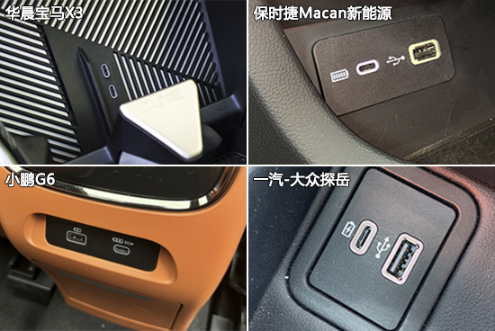 充电接口方面,小鹏G6表现最为出众,不仅全车配备了4个USB接口,而且前排还涵盖了Type-A和Type-C两种接口类型,能够满足不同移动设备的充电需求。华晨宝马X3则配备了2个12V电源接口,数量上具有一定优势。
