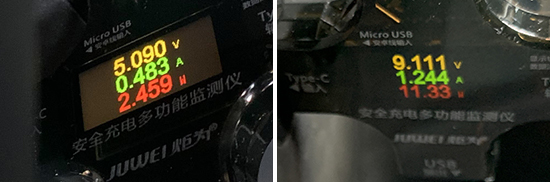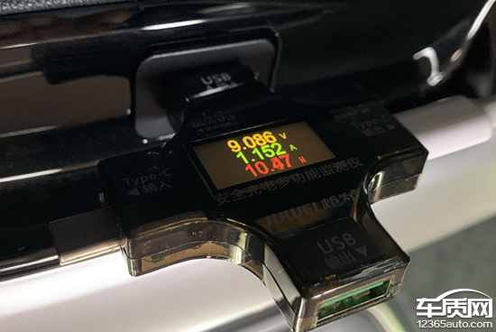 此外,我们对USB接口进行了测试。其中,前排USB Type-A接口充电功率为2.46W左右,USB Type-C接口充电功率为11.33W左右;后排右侧USB Type-A接口的充电功率为10.47W左右。