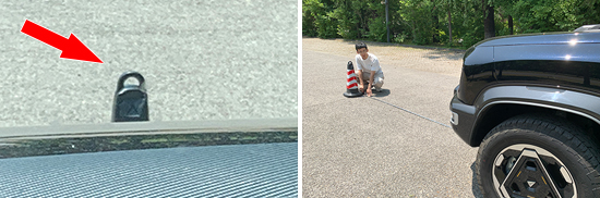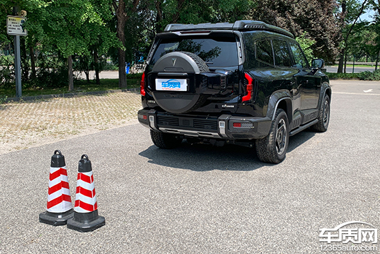 后方视野测试中,依旧将桩桶固定摆放,随后移动车辆直至可以观察到桩桶上沿为止。经实测,评测车配备流媒体后视镜,后方视野所测得的距离为12.665m,在测试过的同级别车型中处于中上游水平。