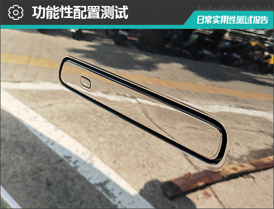 评测车配备全车无钥匙进入功能,但此次仅提供卡片钥匙,开启车门需将卡片钥匙贴到外后视镜专属位置,锁车同理,使用便利性一般。此外,该车还支持蓝牙钥匙和NFC/RFID钥匙,并可以加钱选装遥控钥匙。