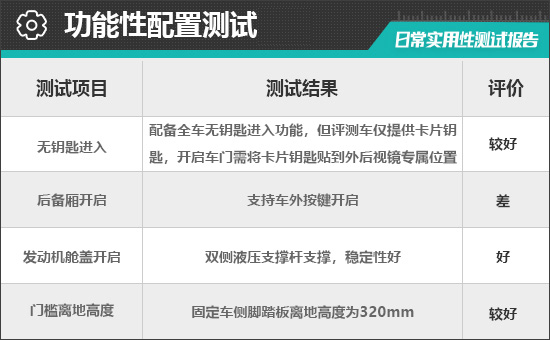 后备厢仅支持车外按键开启,开启方式较少。评测车配备了电动吸合尾门,可以提升日常用车便利性。