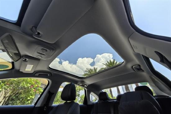 试驾车配备了一块面积很大的全景天窗,采光面积在同类型天窗中也也是比较大的存在,而且它是支持电动遮阳帘完全遮光的。