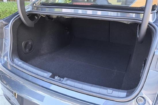 后备厢的开口大小不错,用的竟然还是电动开关。大动力电池并没有对后备箱空间造成负面影响,无论是平整度还是纵深效果的空间依然表现优秀。