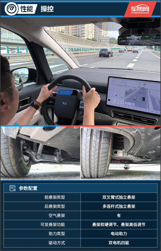 制动初段力度释放相对柔和,脚感偏舒适取向,避免乘客“点头”。但深踩下去,强大的制动力会迅速涌现,能稳稳刹停这个大块头。动能回收系统提供了多级可调,在“强”模式下,松开加速踏板时的拖拽感比较明显,接近“单踏板模式”,需要时间适应;“舒适”模式则更接近燃油车滑行感。