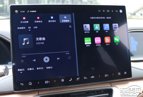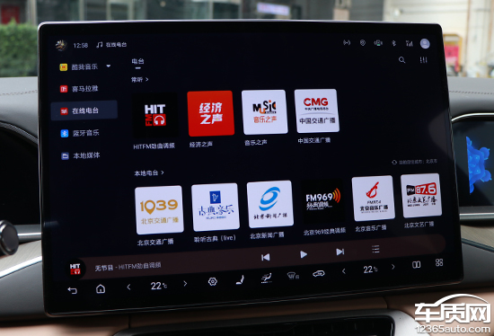 多媒体部分,评测车仅提供网络广播,不仅电台数量较多,并且其他音源的选择也相当丰富。除了酷我音乐、喜马拉雅和在线电台外,系统还支持蓝牙音乐以及本地媒体音源,能够满足日常使用所需。