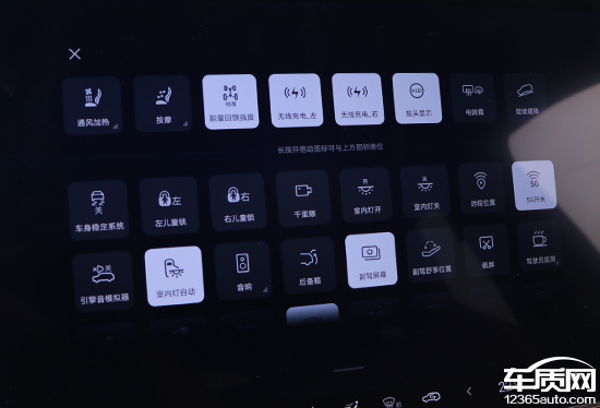 从屏幕顶部下拉即可打开控制中心,预设内容较为丰富,都是日常使用频率较高的功能控制,例如音量、屏幕亮度以及座椅通风/加热开关等。点击下方“自定义”按钮就能看到更多的功能图标,长按并拖动图标即可与上方的图标进行换位,用户可以根据自身使用习惯进行选择。