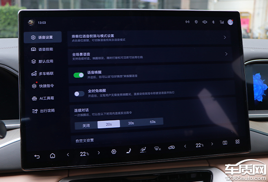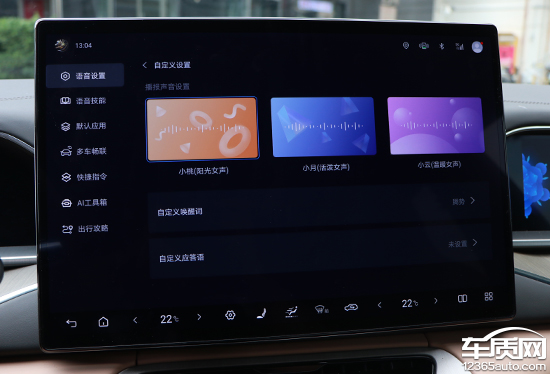语音交互方面,评测车支持四区域语音唤醒识别、语音免唤醒词、语音连续识别以及可见即可说等时下主流功能。播报声音提供多种选择,包括阳光女声以及活泼女声等。此外,语音系统还支持自定义唤醒词以及应答语,能够满足用户的个性化需求。