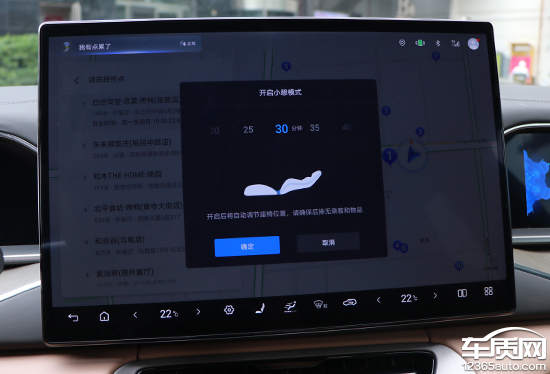 实测后发现,当说出“我有点饿了”、“我不太舒服”和“我有点渴了”三个指令后,系统会分别查询附近餐馆、医院以及便利店的导航信息,前往十分方便。当接收到“我有点累了”指令后,系统会询问是否需要开启小憩模式。总的来看,这套语音系统对于上述这些模糊语义的理解能力较强,反馈比较“简单直给”,实用性方面的表现并无任何槽点。