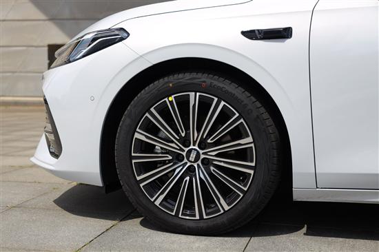 流畅的溜背式车顶线条、锋利的双腰线以及低至0.229Cd的风阻系数(得益于全车21处空气动力学优化),不仅赏心悦目,也对降低能耗有所贡献。其车身尺寸达到了B+级水准,长宽高分别为 4918/1905/1495mm,轴距2845mm,长轴距也带来更大的空间利用率。