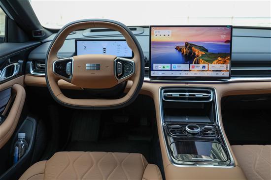双幅式方向盘握感舒适,按键布局合理。最吸引眼球的是由15.4英寸悬浮式中控大屏、全液晶仪表盘和16.6英寸超大W-HUD抬头显示组成的“三屏联动”信息交互体系。车机内置Flyme Auto智能座舱系统,界面设计清爽直观,操作流畅度令人满意,提供了便捷智能的人机交互体验。