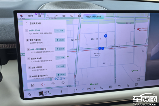 评测车内置高德导航,熟悉的界面以及操作方式和手机移动端相似程度很高。作为一款插混车型,其在导航界面内支持快速查找充电站,并且还能在路线规划时选择沿途的充电站。开始导航后,导航信息会同步至仪表屏和HUD,对于驾驶者来说很实用。