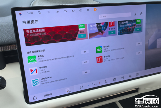 评测车车机内置应用商店,支持软件自定义安装,但实际测试当中可下载的APP种类并不算多。不过,车机自带的APP就基本能够满足多数人的日常需求,且支持无界互联,这样一来手机中的APP就可以同步到中控屏当中,实际交互体验也很不错。