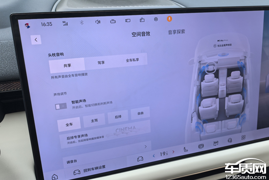 值得一提的是,领克900标配23个扬声器,支持杜比全景声,随时随地都能提供给用户一场听觉盛宴。如果对音质有更高要求,还可以根据喜好调整空间音效,并针对声场、均衡器等进行个性设置。评测车选装了31个扬声器,副驾驶位也有头枕扬声器。