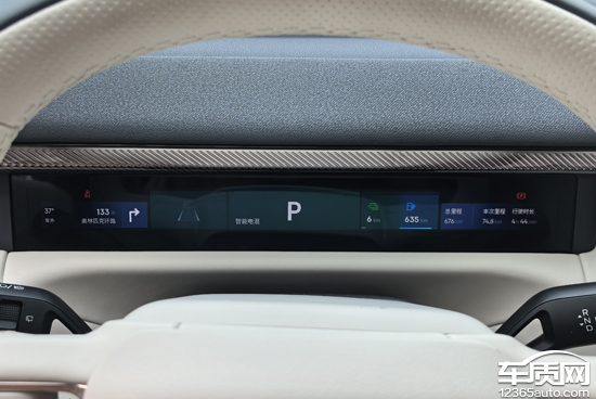 评测车搭载30英寸悬浮式中控屏,分辨率达到6K,显示效果清晰细腻。界面设计十分时尚美观,功能区布局较为合理。常规操作,系统流畅度表现可圈可点,实测过程中并未出现明显的卡顿情况。同时,评测车还配备了12.66英寸全液晶仪表,可直观查看车辆行驶相关信息。