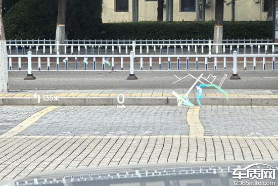 评测车提供HUD抬头数字显示功能,尺寸达到95英寸。实测过程中,HUD画面清晰、支持位置调节并支持AR HUD增强现实抬头显示功能,同时,画面内容很丰富,像车速、导航、车辆周围路况环境等内容均有显示。