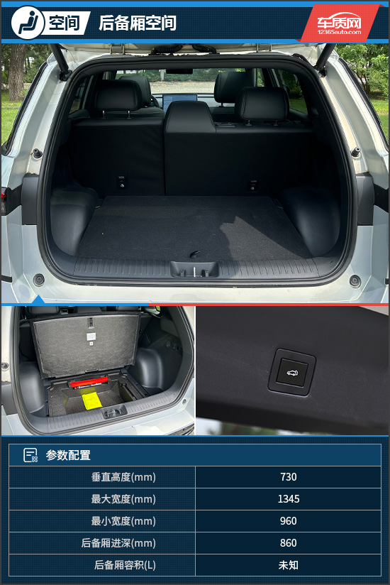 评测车的后备厢内部较为规整,在常规状态下,放置3-4个登机箱不成问题。值得一提的是,后备厢地板下方还设有一个容积较大的储物格,适合放置一些不常用的零碎物品。同时,评测车的后备厢还支持电动感应开启,日常使用便利性不错。