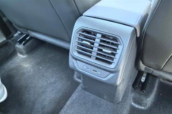 后排配备了基础的空调出风口面板以及小的储物格,同时带有一个USB充电接口和一个TYPE-C的接口,其余的就暂不供应了。