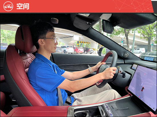 评测车搭载由1.5T增程器和后置单电机组成的增程式动力系统,官方公布的0-100km/h加速时间为7.6s。实际体验来看,得益于电动机扭矩释放快的特性,车辆起步较为敏捷。动力输出较为平顺线性,并不会产生眩晕感。