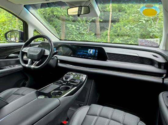 来到车内,星海V9的内饰布局还是有了一些变化的,就比如取消了原本的贯穿式大屏幕,换成了现在的双12.3英寸屏幕,这样看起来也是更加的精致和时尚。用料方面的表现还是比较不错的,我们手能触及到的地方都采用了软包材质,并进行了皮质包覆。