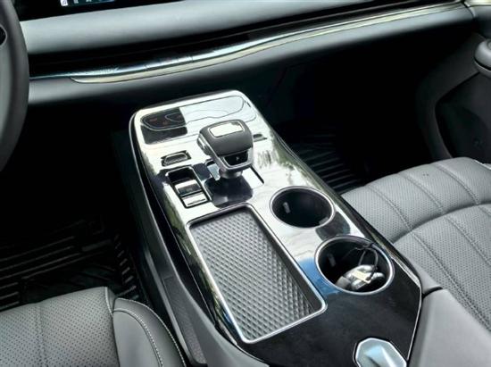 中央通道是保留了电子挡把,并且悬浮岛式的中央通道上还新增了空调触控调节面板,使用起来还是比较方便的。整个通道的空间利用率真的很不错,包括二层空间、水杯架以及手机槽,都是非常大气与规整的。中央扶手箱的位置并没有冰箱,这还是有点小遗憾的。