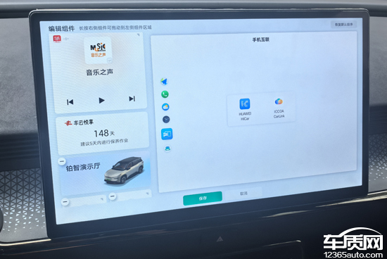 评测车的车机系统界面设计简洁,操作逻辑也非常简单,很容易查找到相应功能。其中,主界面左侧设置有虚拟卡片,左右滑动即可实现虚拟卡片的关闭和开启,用户可以根据个人需求进行功能编辑和位置调换。同时,屏幕底部配有便捷功能栏,占比并不大,可以对主页、应用、车辆功能、空调、座椅等进行设置。