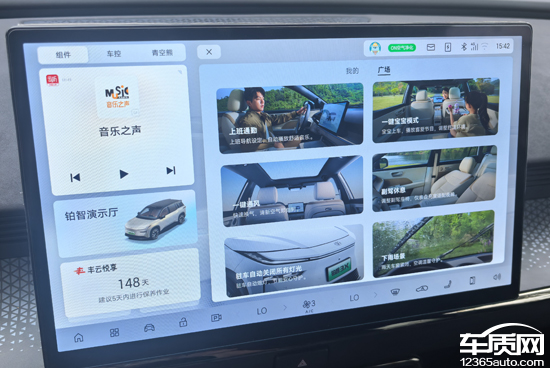 同时,车机系统内置了情景模式,在小憩模式下,车辆会将座椅放倒并提示用户设定唤醒闹钟;影院模式中,车辆会将座椅放倒并提示用户从哔哩哔哩、芒果TV等视频源中选择视频进行播放;舒缓空间里,车机会播放舒缓的音乐并在中控屏播放不同主题的动效画面,进一步提升了用户在日常使用当中的便捷体验。
