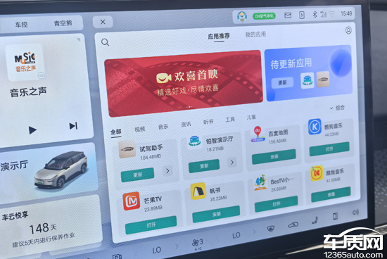 评测车车机内置应用商店,支持软件自定义安装,但实际测试当中可下载的APP数量并不算太多。不过,应用种类涉及了视频、音乐、资讯、儿童等方面,对于多数用户而言已经足够日常使用。