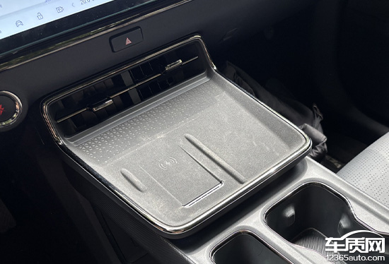 评测车在前排配备了1个50W的手机无线充电板,位于中岛前方,位置设计合理,驾驶员拿放手机方便。此外,无线充电板还支持开关和散热功能。
