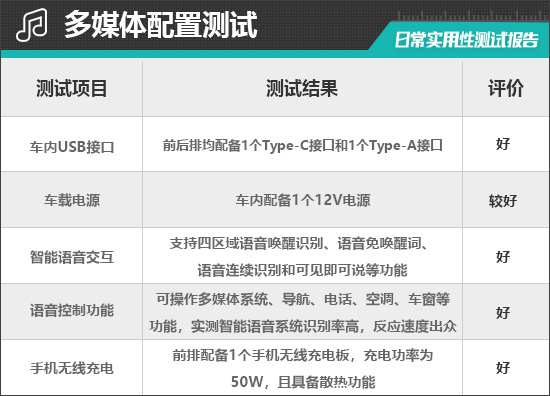 经过实测,由于评测车配备的是不可开启全景天窗,所以无法实现“打开天窗”指令。除此之外,上述其它指令都能够识别并执行,而且语音识别准确,反应迅速,体验良好。