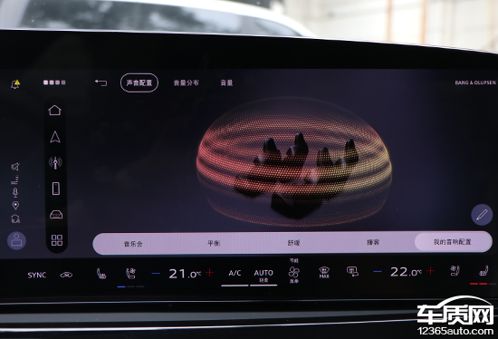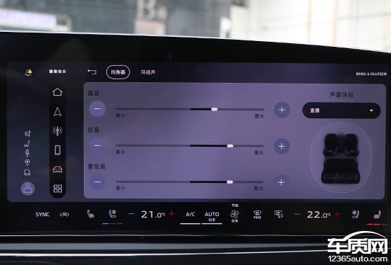 评测车搭载Bang&Olufsen音响系统,拥有16个高性能定制扬声器,搭配智能声学算法,官方表示能够为乘员带来如临现场的听觉盛宴。除了出色的硬件配置,软件层面的可玩性也很强,可调节内容相当丰富,包括声音配置、音量分布、均衡器以及环绕声等。