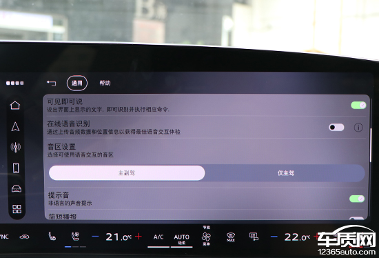 语音交互方面,评测车支持双区域语音唤醒识别、免唤醒词、连续对话、可见即可说以及个性化语音包。此外,用户还可以开启在线语音识别,通过上传音频数据和位置信息以获得最佳语音交互体验。