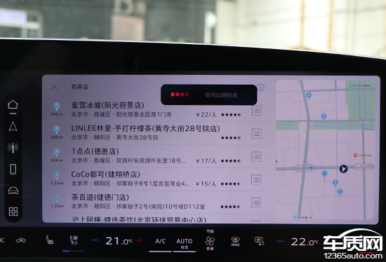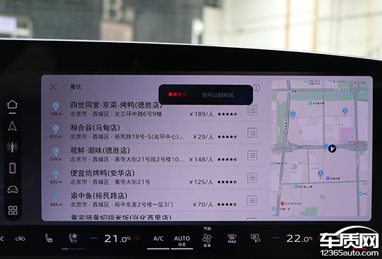 实测后发现,当说出“我有点饿了”和“我有点渴了”,系统会分别查询附近餐馆以及饮品店信息,导航前往十分方便。至于另外两个指令,系统则总是会引导用户“换个说法”,仍无法理解后就会直接卡住甚至自动退出,体验感并不好。