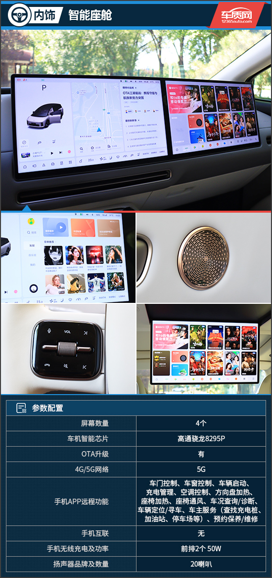 车机搭载高通骁龙8295P芯片,系统运行流畅无卡顿,应用启动和切换速度较快,处理多任务也完全没有问题。智能语音系统支持六区域语音识别,新升级的理想同学语音助手不仅可以陪你聊天,也可以帮你点餐、买票。此外,评测车还选装了后排21.4英寸吸顶屏,采用防眩光LCD材质,与前排屏幕独立运行,支持手势控制以及4K流媒体播放。