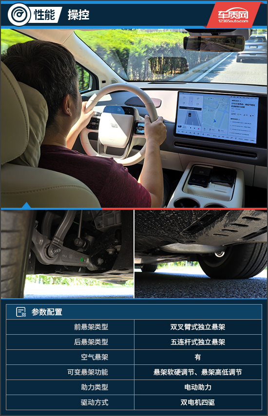 实际驾驶过程中,加速踏板初段并不灵敏,能有效避免出现晕车感;中后段调校接近大排量燃油车的线性脚感,整体动力输出无顿挫感,城市拥堵路段跟车比较轻松,高速再加速能力也十分出众。