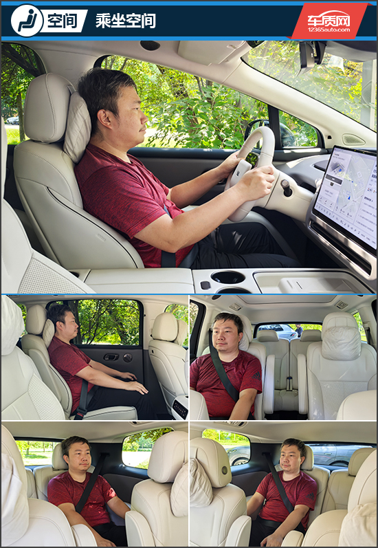 凭借超过3m的轴距,理想i8拥有充裕的内部空间。实测身高172cm的体验者进入第二排,腿部有两拳两指的距离,头部有三拳的距离,乘坐宽敞舒适。同样身高的体验者来到第三排,在正常坐姿下,腿部有两拳的距离,头部有一拳两指的距离。