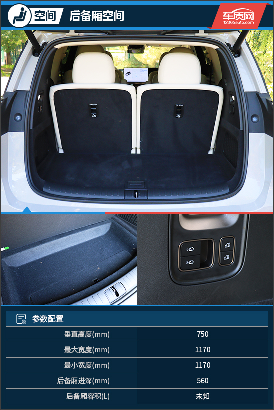 后备厢在第二和第三排座椅全部启用的状态下空间表现中规中矩,可以容纳5-6个登机箱。一键电动放倒第三排座椅后,可以形成一个近乎纯平的大空间,搬运大件物品不在话下。