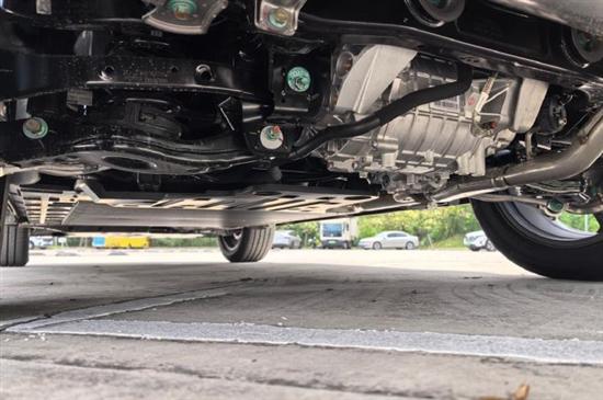 底盘方面则给出前双叉臂+后五连杆悬架、全框式副车架、前悬架铝合金下摆臂等偏重操控与舒适的配置,并没有因为造型向硬派倾斜,看得出它依然是一台为铺装路面而优化的大空间家用车。整体悬挂调校明显是偏软偏向家用的,但也没有了非承载式那种特有的漂浮感。这套悬架处理滤振很干脆,上下坎过后都不会有多余的回弹振动再次传入车内,处理较大的抛跳时也能在第一时间把多余的晃动完全抑制,车身姿态非常稳定。