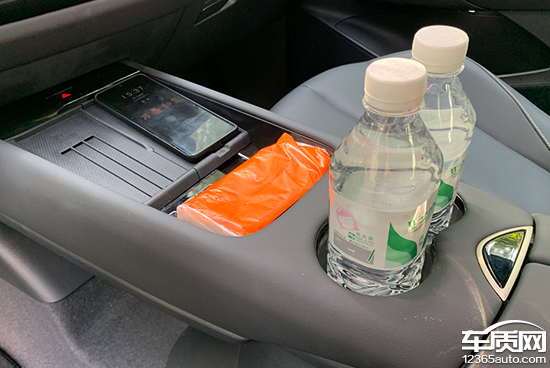 评测车在前排中控台下方配备了1个手机无线充电板,位置设计合理,充电功率为40W,支持开启和关闭,驾驶员拿放手机也很方便。