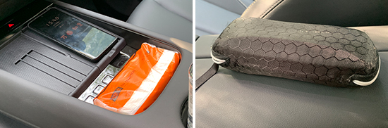 前排中央扶手采用对开式设计,造型规整且面积宽大,表面为软性材质包裹,触感不错。在驾驶过程中,能够为驾驶者手肘提供有效支撑。