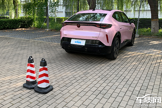 在测试前方视野环节,我们采用高70cm的桩桶作为参照物,随后调整车距,直至在主驾驶位可以看到桩桶上沿。经过测试,桩桶与车头最终测得的数据为2.335m,在测试过的同级别车型中处于中上游水平。