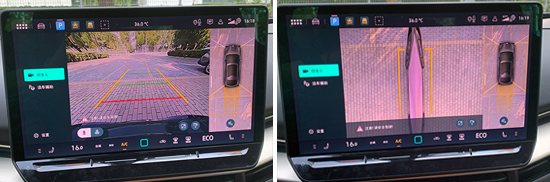 评测车配备了360度全景影像,经实测,影像整体画质清晰,畸变控制较好。同时,影像系统还提供多角度查看,可以让驾驶员更全面地了解车辆周边情况。