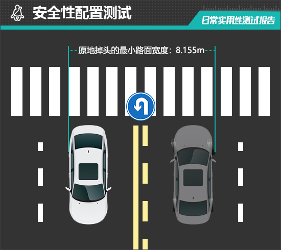 车辆在日常使用中,经常会遇到转弯或者掉头的情况,这个时候车辆的转向灵活性就显得非常重要了。了解爱车在原地掉头时所需的路面宽度,能做到心中有数,从而避免剐蹭等危险情况的发生。经过实测,评测车原地掉头的最小路面宽度为8.155m,处于同级别上游水平。