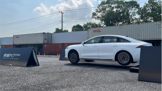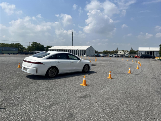 而荣威M7 DMH对于高速过弯及绕桩的项目,由于场地限制,绕桩时的时速设定仅是30-40km/h,速度偏慢模拟一些出入匝道的路段,车内的体感没有多余的左右摆动,重心自然也没有过多偏移。