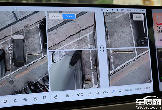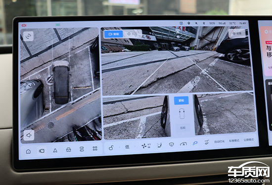 评测车配备360°全景影像、车侧盲区影像以及透明底盘/540°影像,支持多角度显示,系统内的环视设置相当丰富,包括透明底盘、障碍物标记和辅助线。实测来看,在白天光线条件比较充足的情况下,画面清晰度表现良好,并且畸变控制也完全能够令人满意。