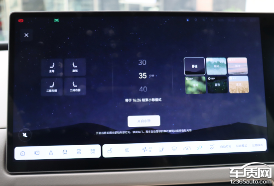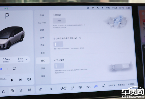 车机系统内置情景模式,主打的“小憩模式”功能丰富,可以联动座椅、灯光、空调以及音响系统等。除此之外,“小主人模式”也十分新颖,开启后,桌面和理想同学将切换为儿童模式,提供儿童专属的音视频以及益智知识内容。