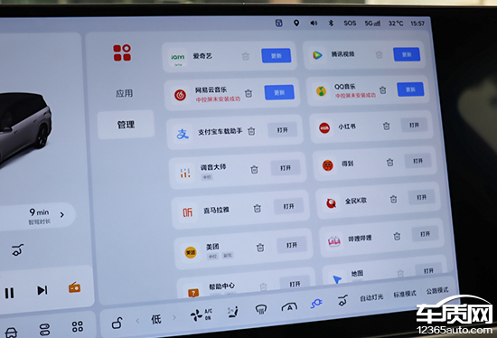 车机系统内置应用市场,APP数量较为丰富,不过分类做得并不好。具体来看,页面左侧只有两个标签,分别为应用和管理,个人感觉功能还存在细化和完善的空间。